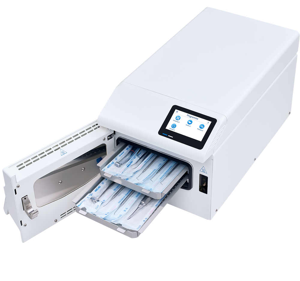 Der Vacuclave 305 ist ein Meisterwerk der Ingenieurskunst, entwickelt für Praxen, die Wert auf Effizienz, Schnelligkeit und Zuverlässigkeit legen. Mit einer beeindruckenden Zykluszeit ab 6,5 Minuten (plus Trocknung) ist der Vacuclave 305 einer den schnellsten Autoklaven auf dem Markt, der Ihren Arbeitsablauf erheblich beschleunigt.