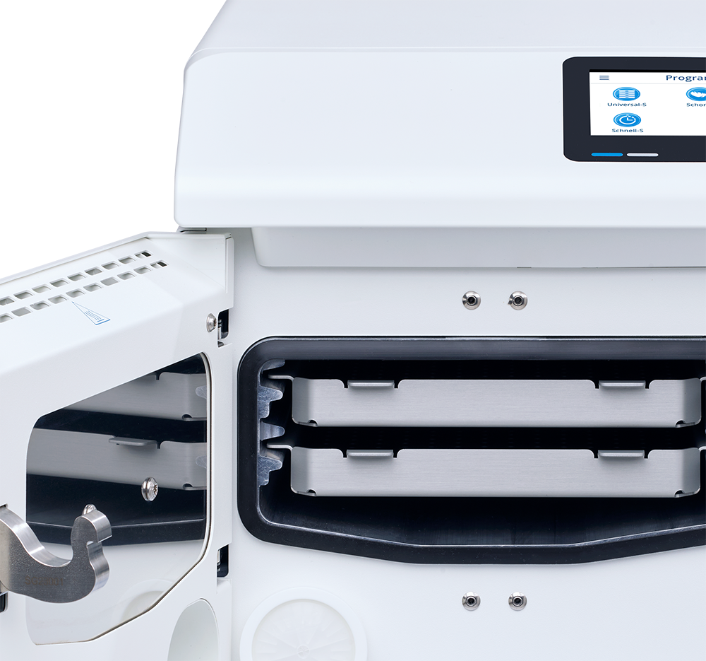 Ausgestattet mit intelligenten Technologien wie der patentierten DRYtelligence für optimale Trocknungsergebnisse und ProControl für die Chargenfreigabe, Benutzerauthentifizierung und Etikettendruck direkt am Display, setzt der Vacuclave 305 neue Maßstäbe in der Instrumentenaufbereitung.
