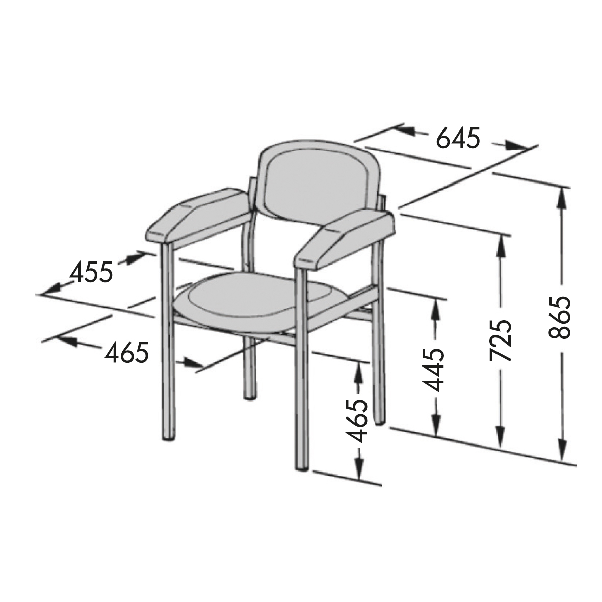- Maße: 645 × 865 × 455 mm (B × H × T)